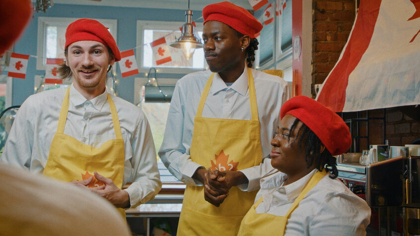 A fresh, knowingly ironic comedy about Gen Z squaring up to the Millennials. A queer sitcom that flirts with absurdity, wielding brash humour that slips effortlessly into bittersweet territory.